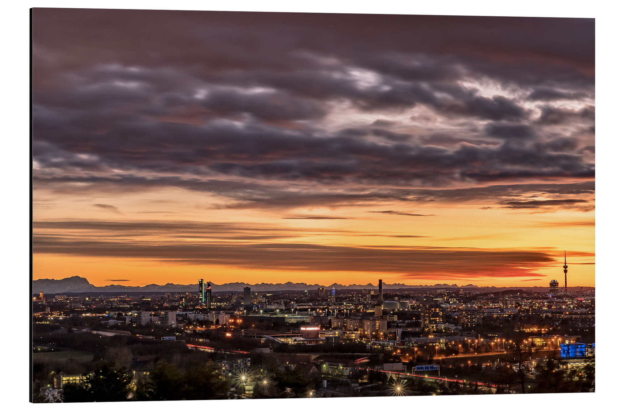 Posterlounge   Wandbilder   Querformat   Achim Thomae   Magnettafel Sonnenuntergang über München mit Alpenblick