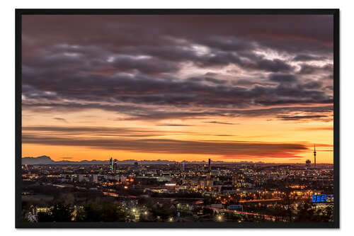 Posterlounge   Wandbilder   Querformat   Achim Thomae   Gerahmter Kunstdruck Sonnenuntergang über München mit Alpenblick
