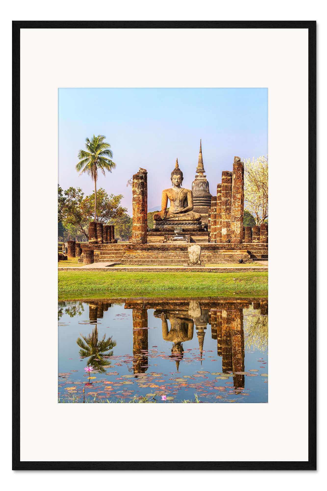 Posterlounge   Wandbilder   Fotografie   Matteo Colombo   Gerahmter Kunstdruck Wat Mahathat buddhistischen Tempel spiegelt sich im Teich, Sukhothai, Thailand