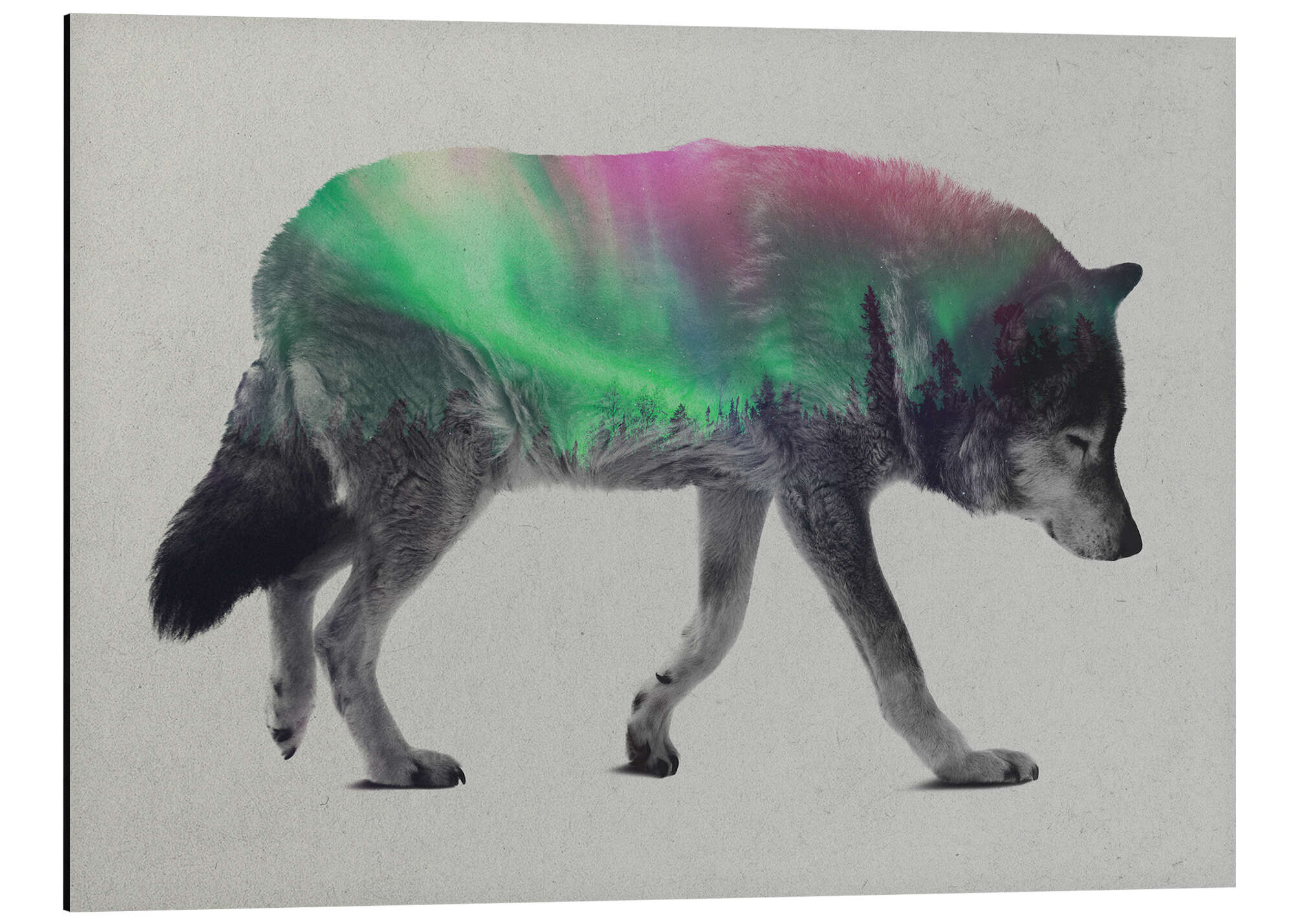 Posterlounge   Künstler   Andreas Lie   Magnettafel Wolf in Aurora Borealis