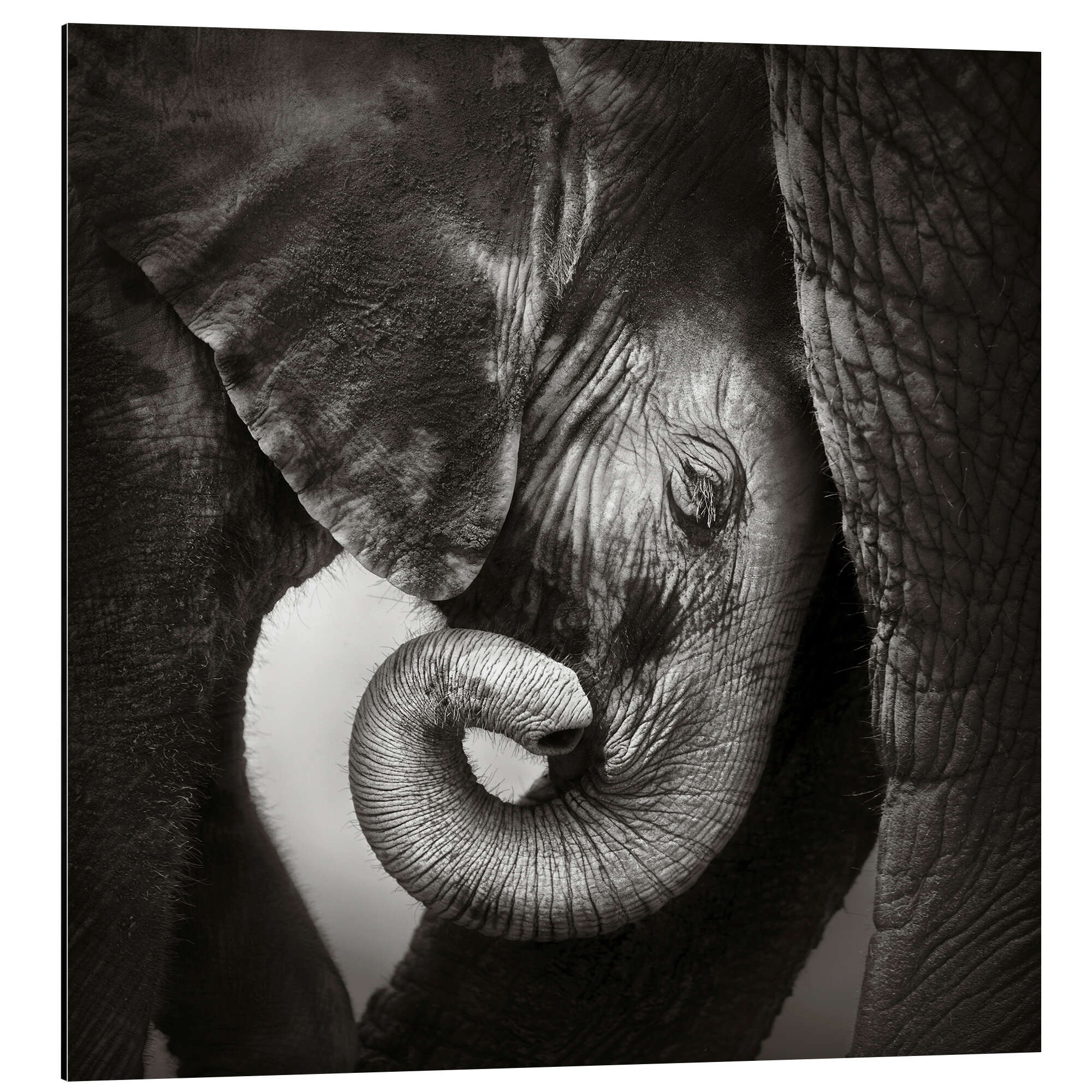 Posterlounge   Wandbilder   Schwarz   Johan Swanepoel   Magnettafel Baby-Elefant an Mutter gelehnt
