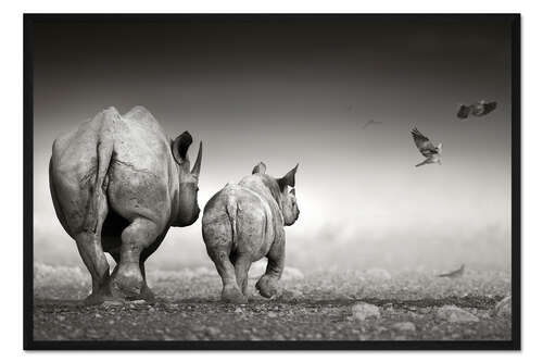 Posterlounge   Wandbilder   Fotografie   Johan Swanepoel   Gerahmter Kunstdruck Nashornkuh mit Kalb