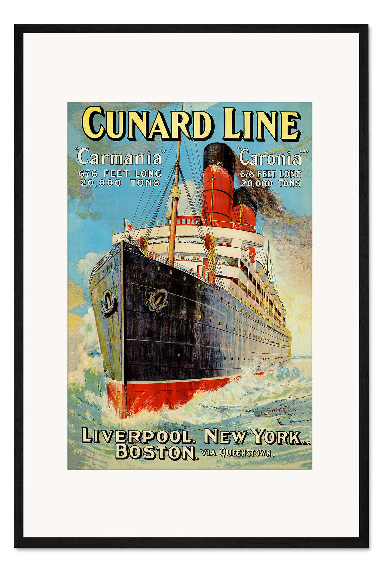 Posterlounge   Wandbilder   Illustration   Edward Wright   Gerahmter Kunstdruck Cunard Line - Liverpool, New York, Boston