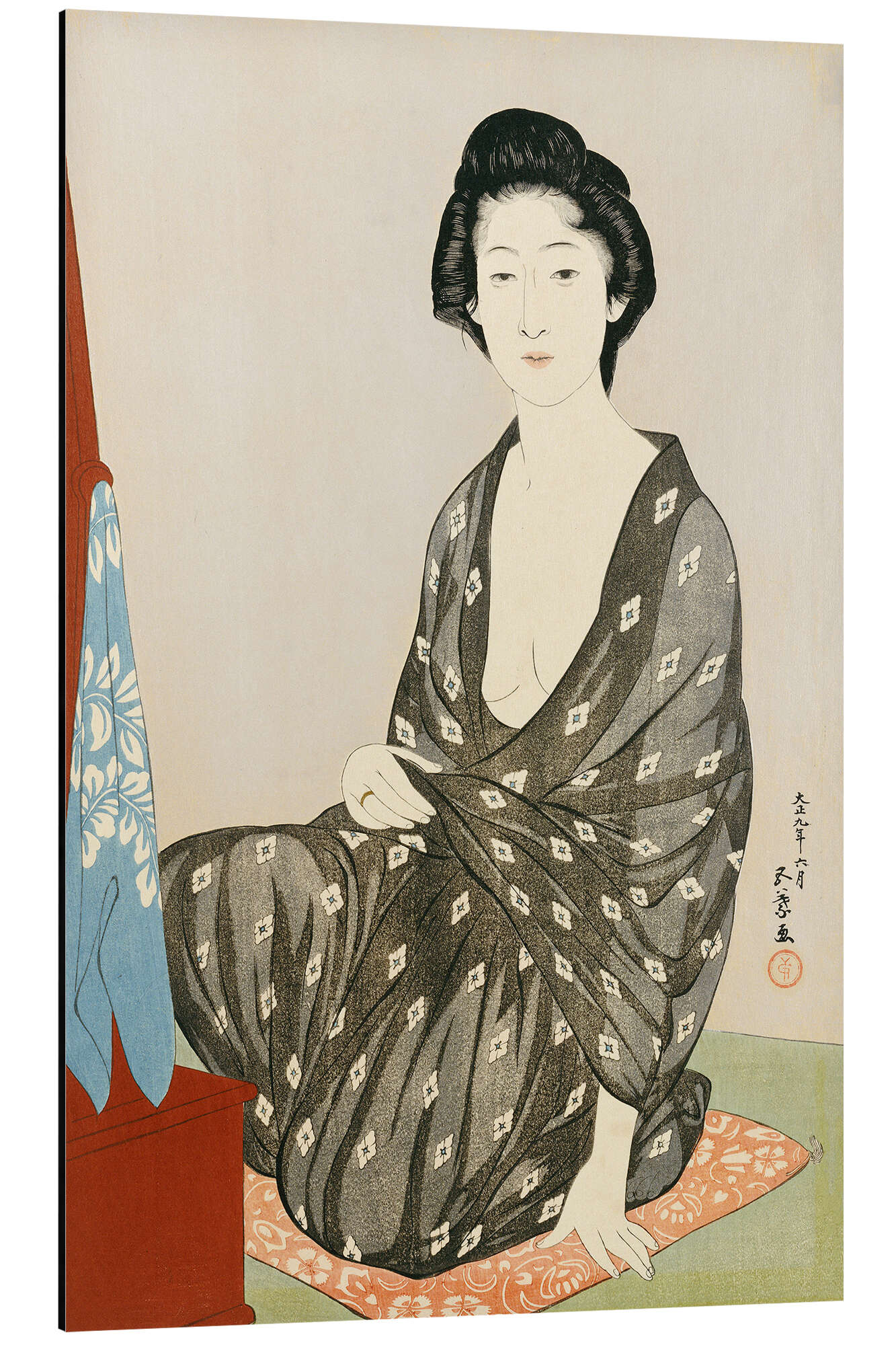 Eine Schönheit in einem schwarzen Kimono mit weißem Hanabishi von Goyo Hashiguchi ARTOTHEK