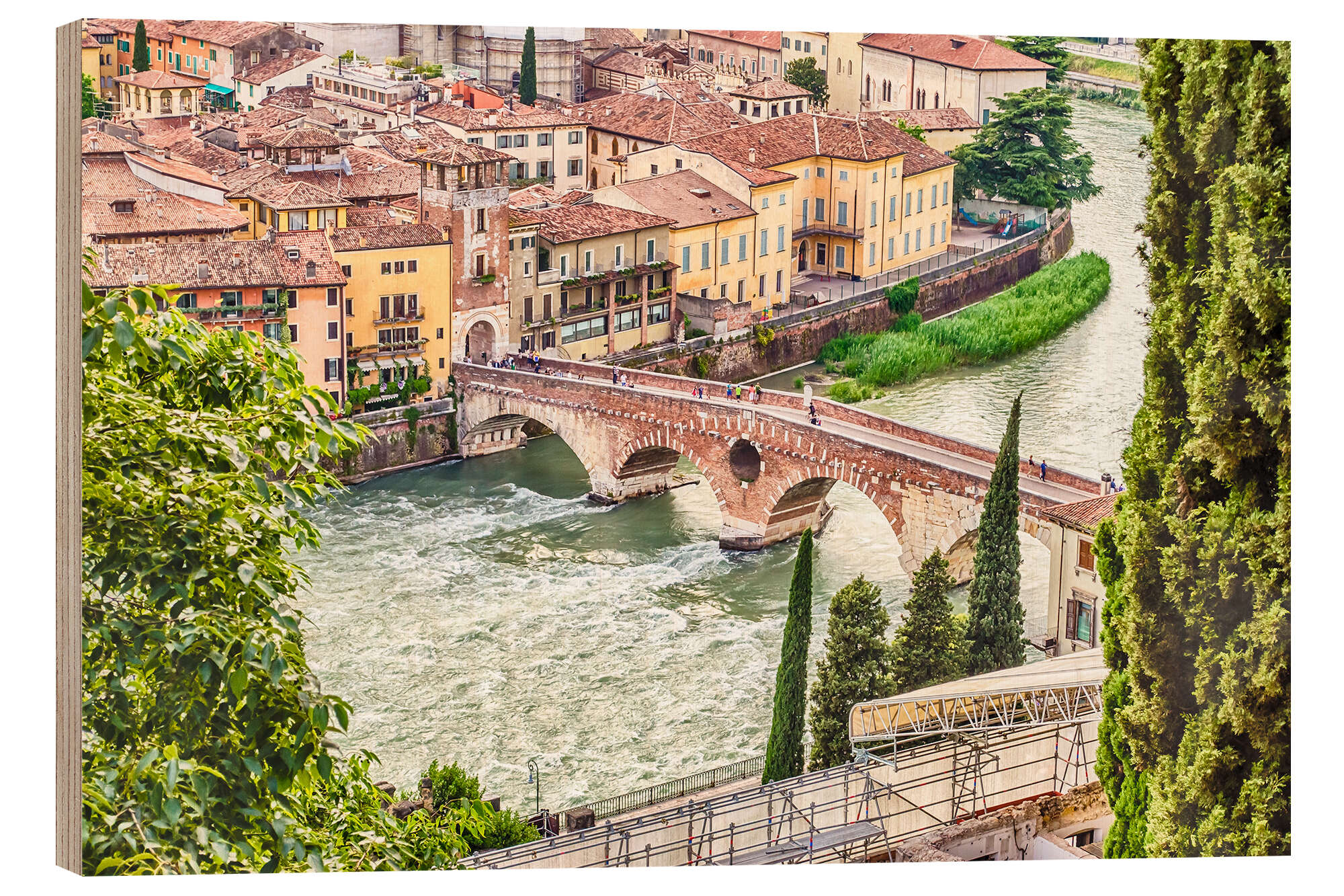 Holzbild Ponte di Pietra über die Etsch in Verona