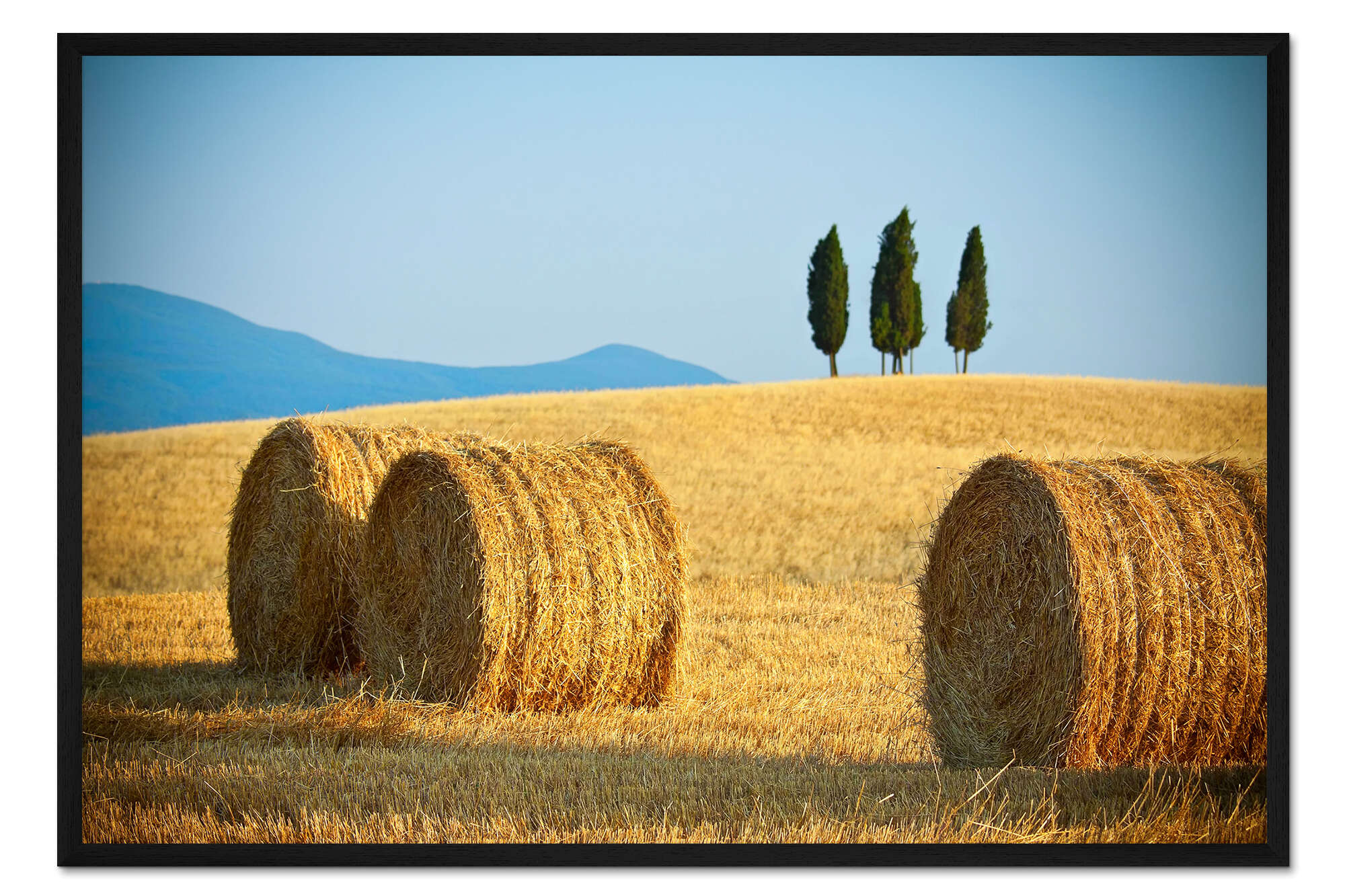 Posterlounge   Wandbilder   Fotografie   Gerahmter Kunstdruck Toskana-Landschaft mit Strohballen