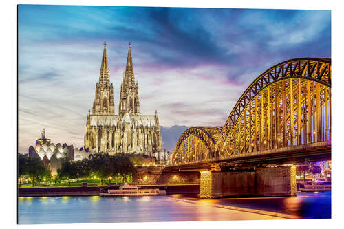 Posterlounge   Wandbilder   Fotografie   Magnettafel Beleuchteter Dom in Köln mit Brücke und Rhein