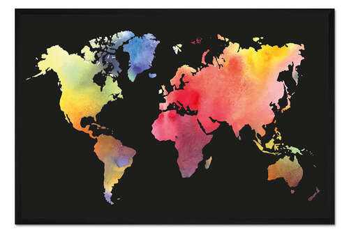 Posterlounge   Wandbilder   Querformat   Gerahmter Kunstdruck Weltkarte in Aquarell
