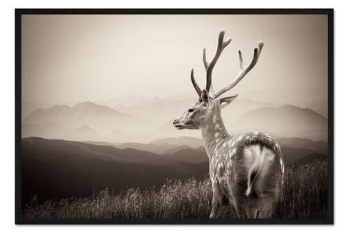 Posterlounge   Wandbilder   Fotografie   Gerahmter Kunstdruck Hirsch in den Bergen