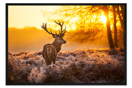 Posterlounge   Wandbilder   Querformat   Gerahmter Kunstdruck Rothirsch in der Morgensonne