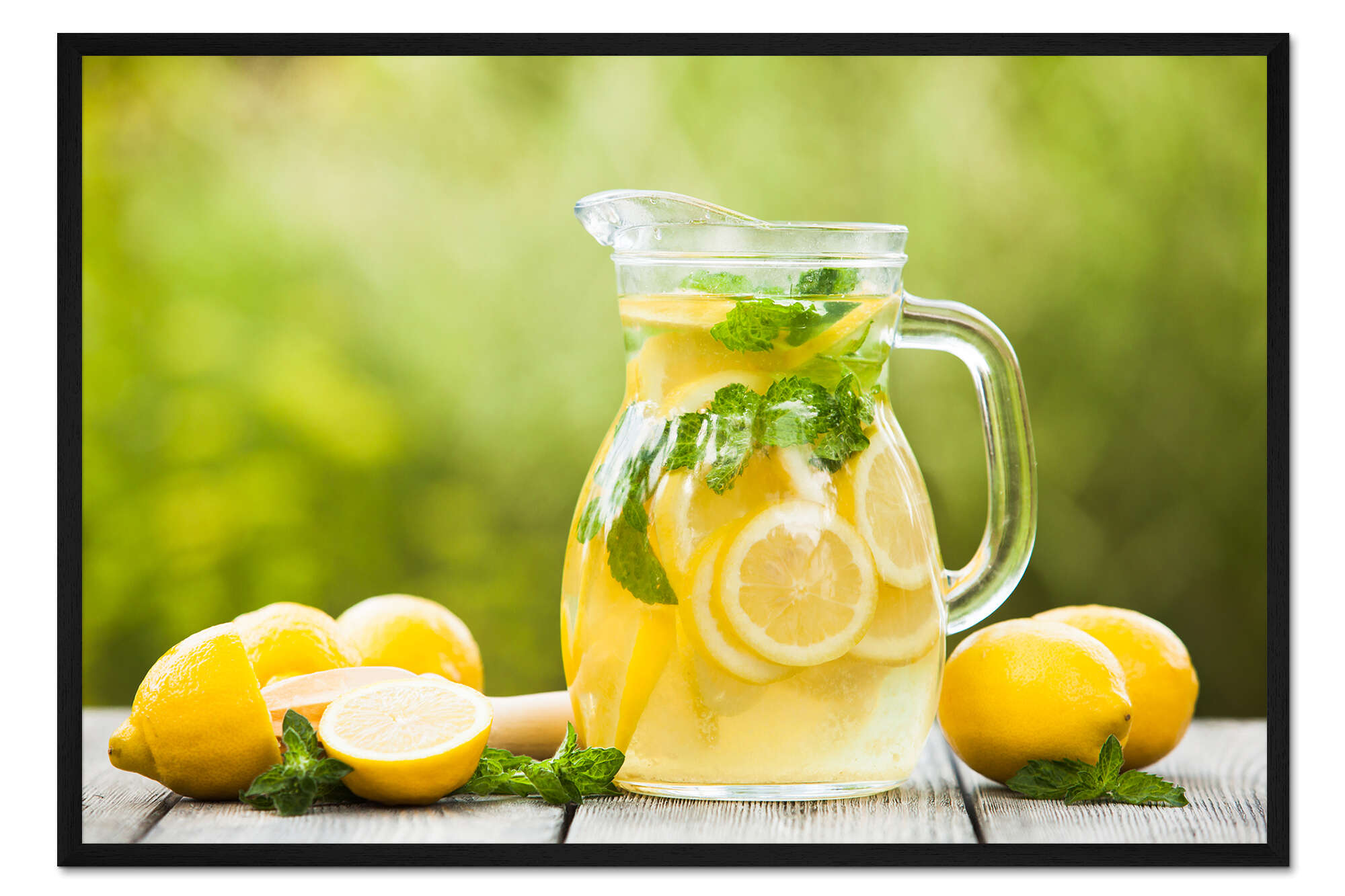 Posterlounge   Wandbilder   Grün   Gerahmter Kunstdruck Limonade im Krug und Zitronen mit Minze
