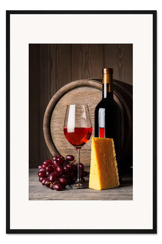 Posterlounge   Wandbilder   Fotografie   Gerahmter Kunstdruck Rotwein mit Käse und Trauben