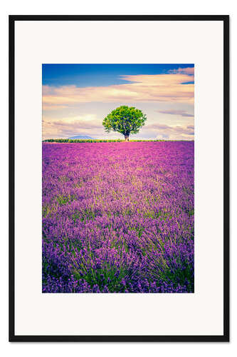 Posterlounge   Wandbilder   Reisen   Provence   Gerahmter Kunstdruck Lavendelfeld mit Baum in der Provence, Frankreich