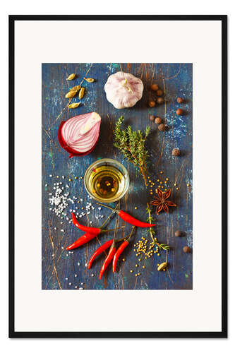 Posterlounge   Wandbilder   Fotografie   Gerahmter Kunstdruck Gewürze und Kräuter auf Holz
