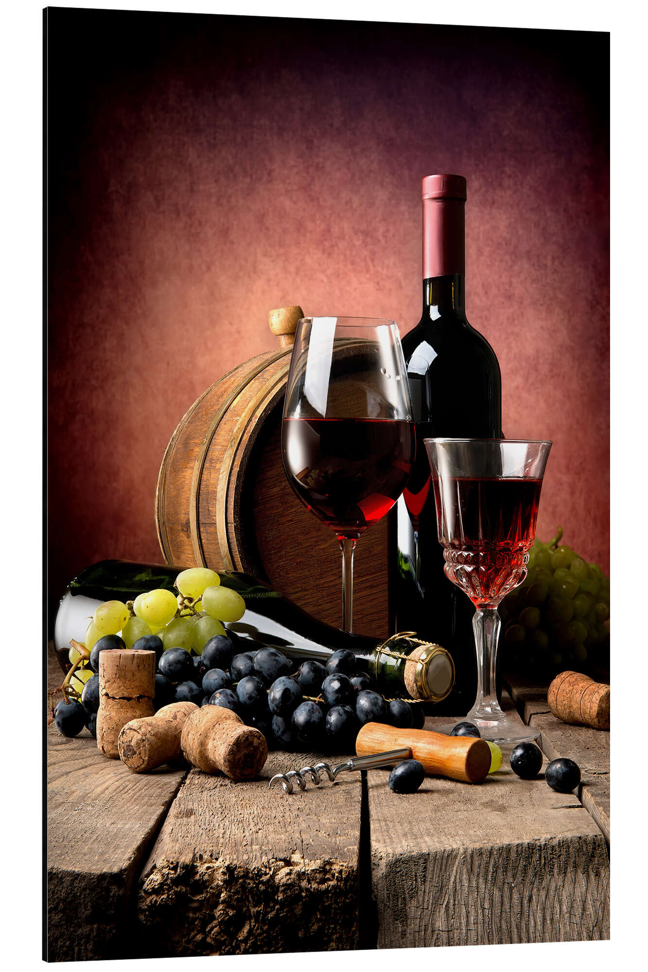 Posterlounge   Wandbilder   Fotografie   Magnettafel Rotwein mit Trauben und Korken