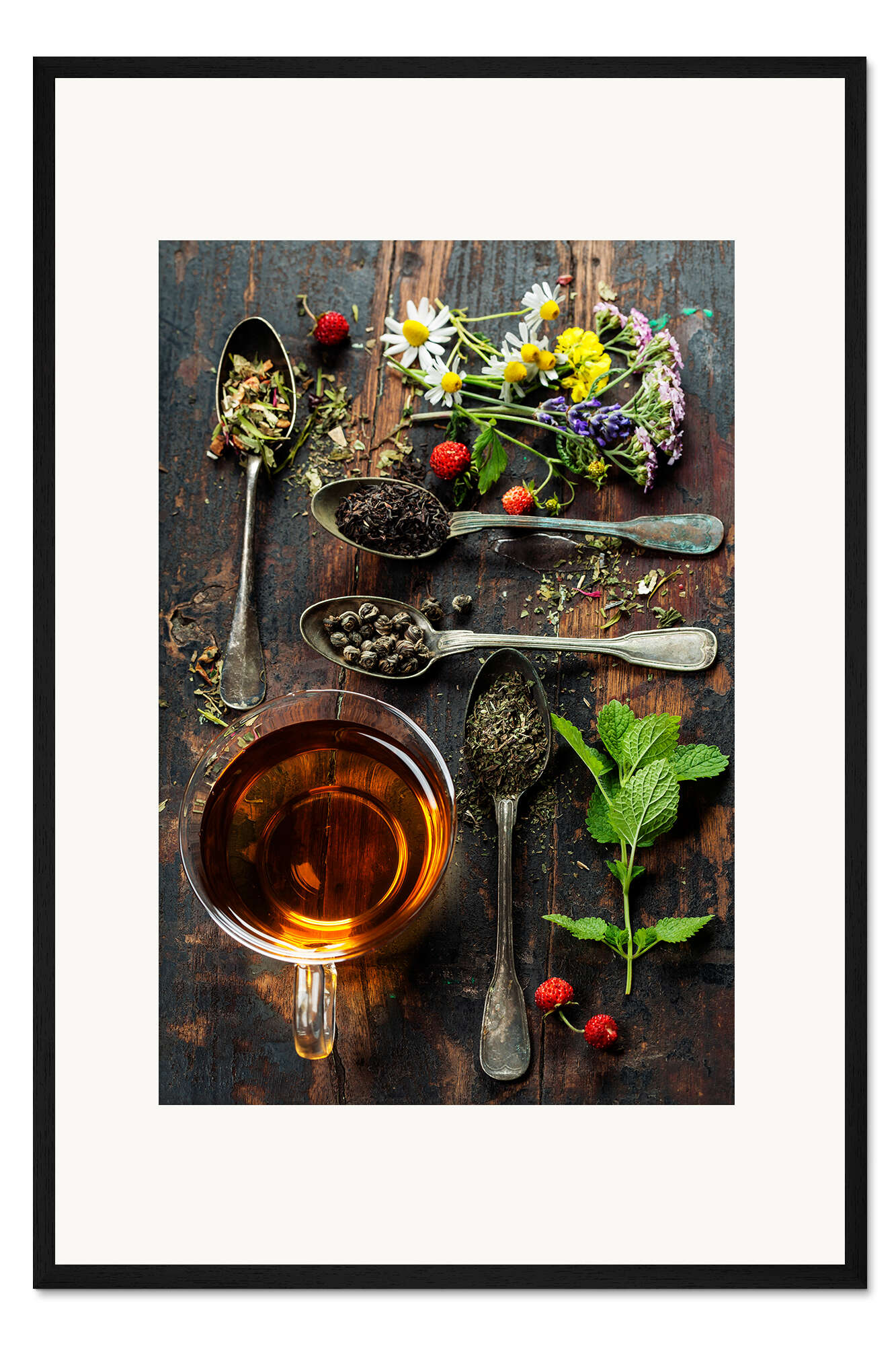 Posterlounge   Wandbilder   Fotografie   Gerahmter Kunstdruck Tee mit Honig, wilden Beeren und Blumen