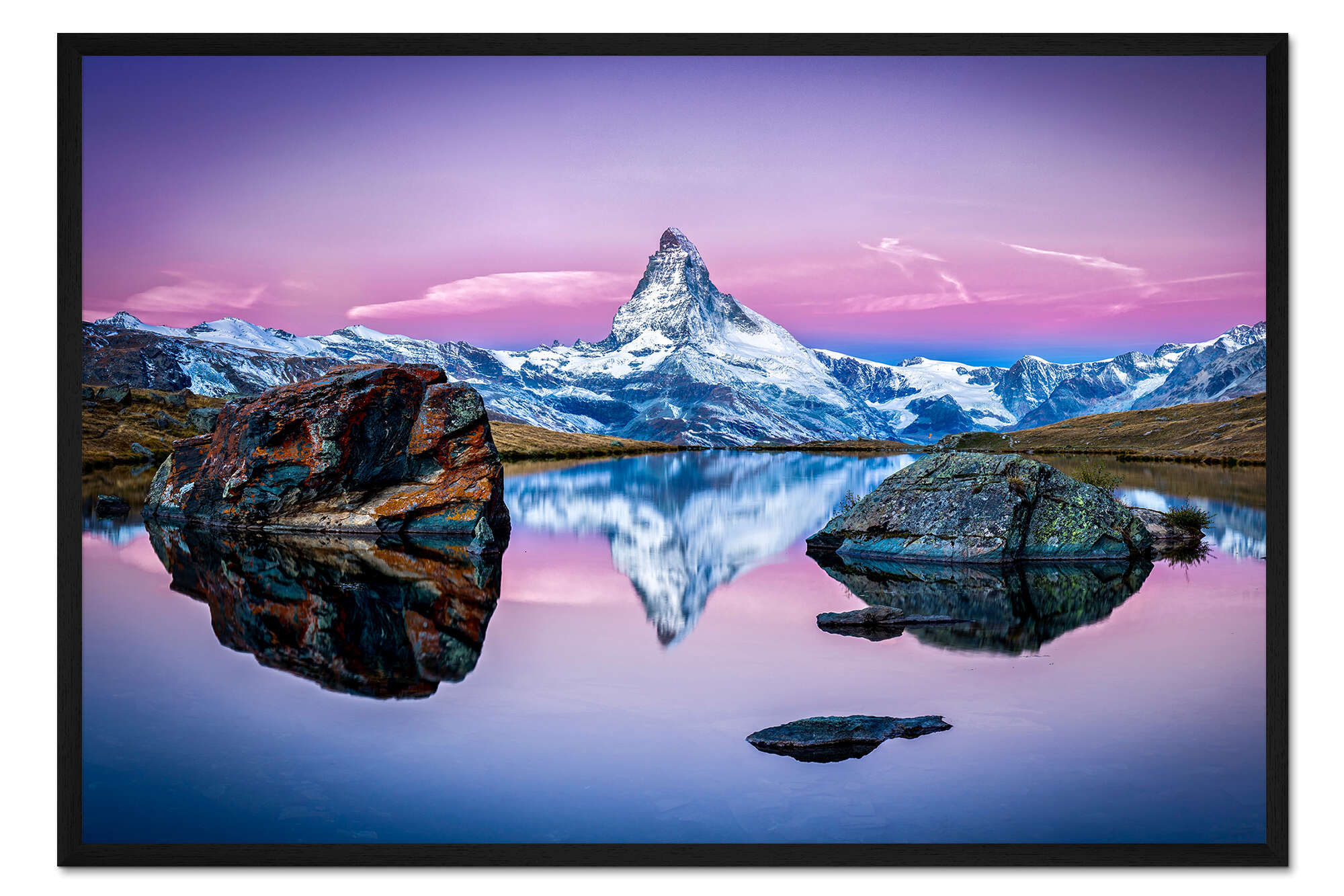 Posterlounge   Wandbilder   Querformat   Jan Christopher Becke   Gerahmter Kunstdruck Stellisee und Matterhorn in den Schweizer Alpen