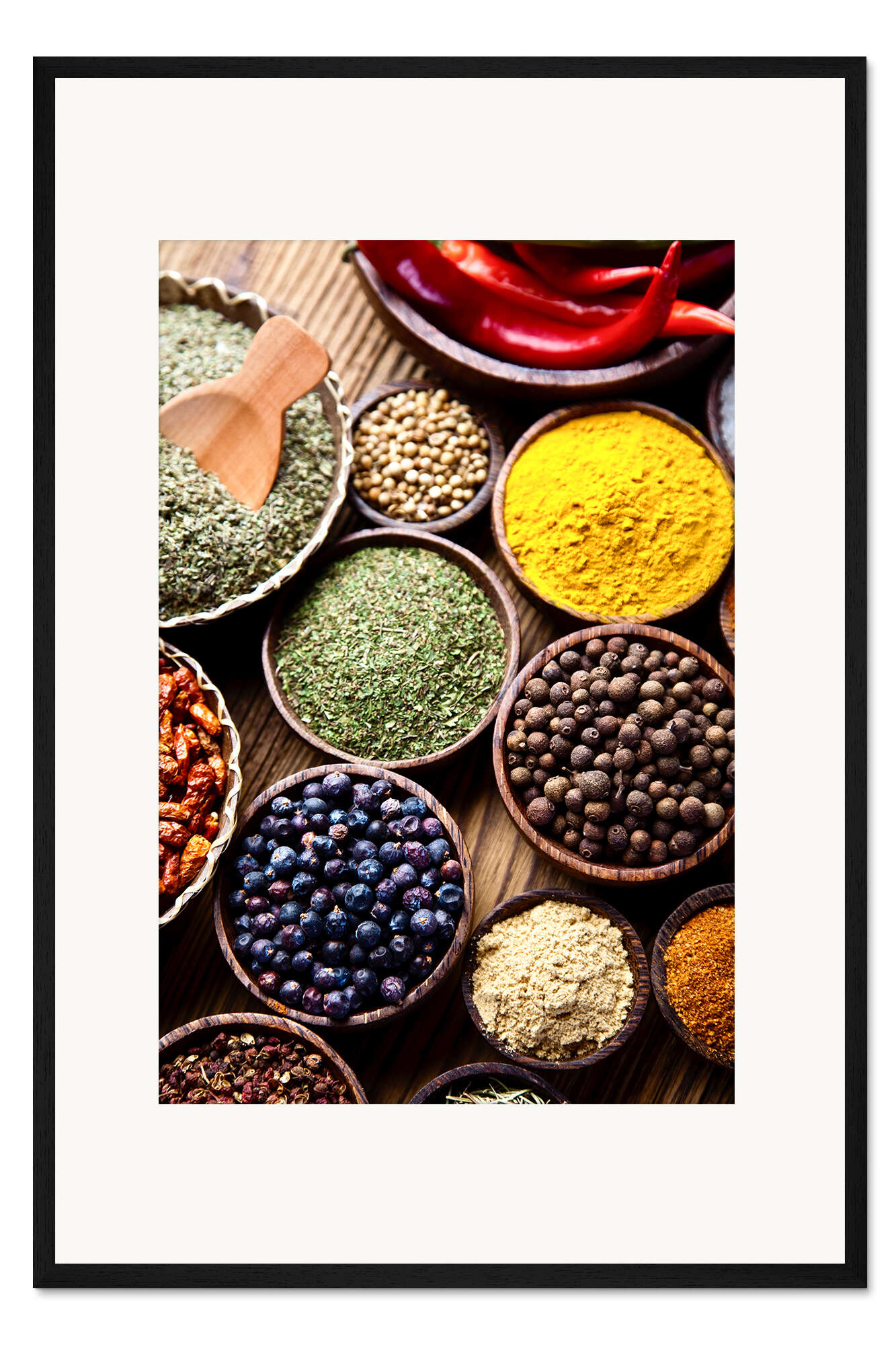 Posterlounge   Wandbilder   Fotografie   Gerahmter Kunstdruck Gewürze auf einem Holztisch