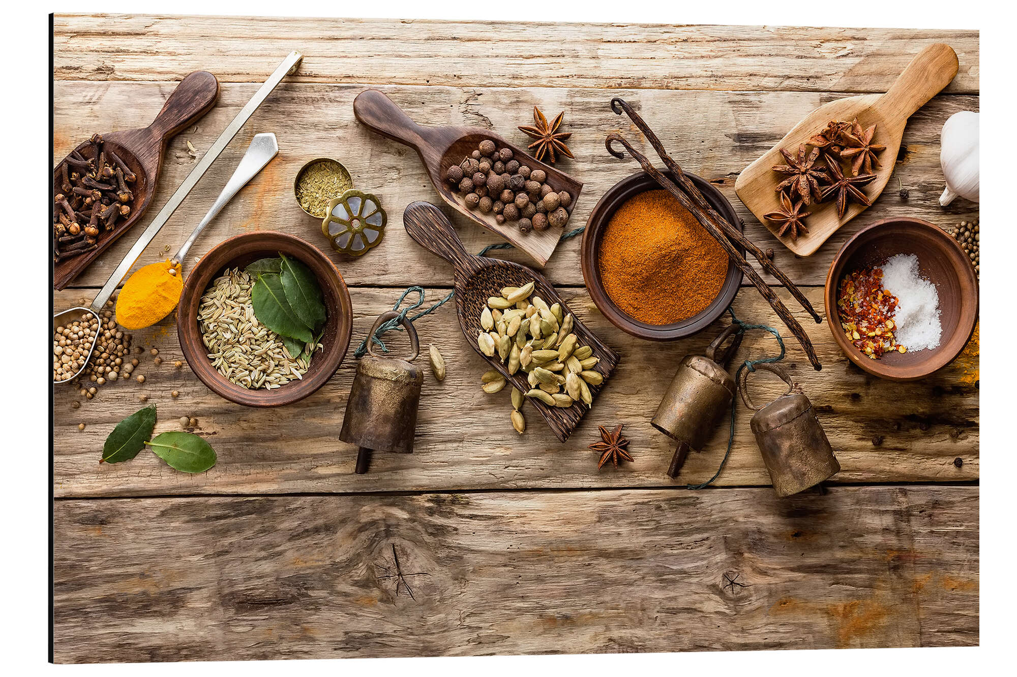 Gewürz-Stillleben mit Löffeln und Schalen