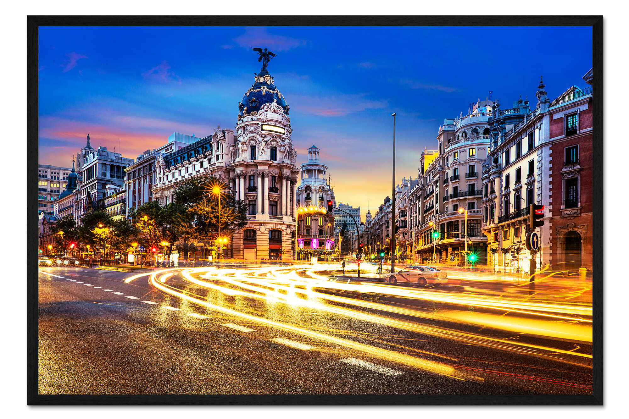 Posterlounge   Wandbilder   Querformat   Gerahmter Kunstdruck Einkaufsstraße in Madrid bei Nacht