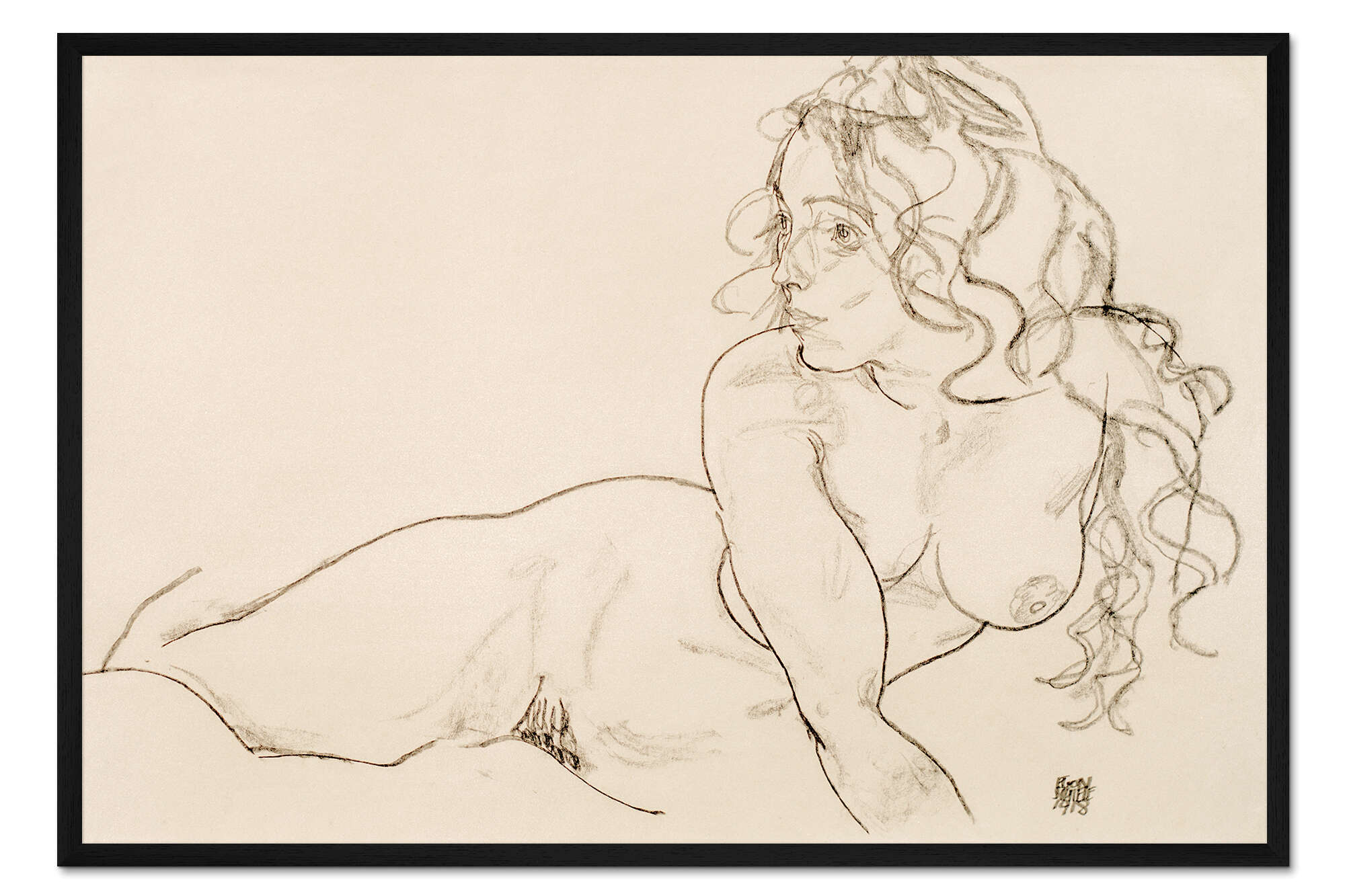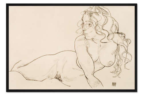 Posterlounge   Wandbilder   Beige   Egon Schiele   Gerahmter Kunstdruck Weiblicher Akt mit langem Haar