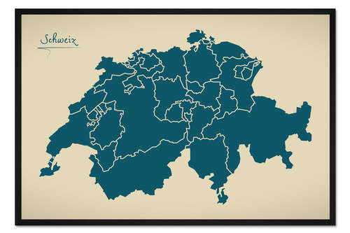 Posterlounge   Wandbilder   Illustration   Ingo Menhard   Gerahmter Kunstdruck Schweiz Landkarte Modern Map Artwork Design