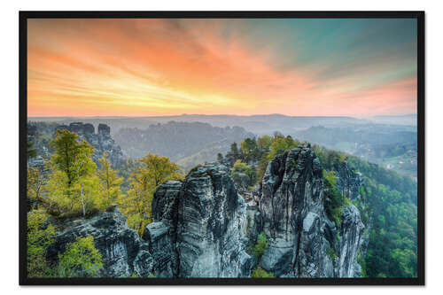Posterlounge   Wandbilder   Fotografie   Michael Valjak   Gerahmter Kunstdruck Bastei Sächsische Schweiz Sonnenaufgang