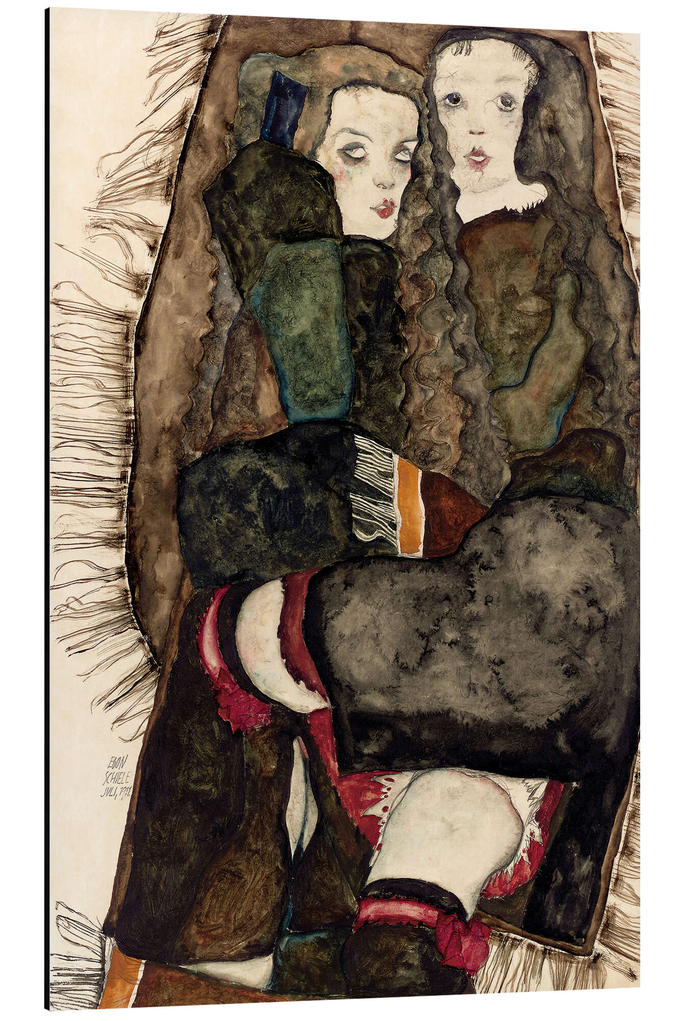 Posterlounge   Wandbilder   Braun   Egon Schiele   Magnettafel Zwei Mädchen auf einer Decke mit Fransen