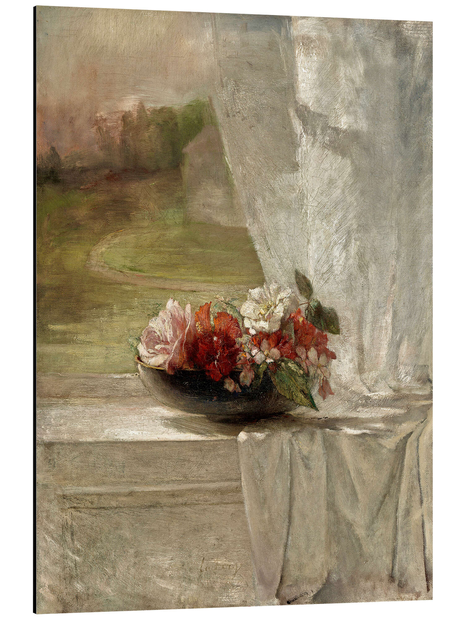 Magnettafel Blumen auf einer Fensterleiste