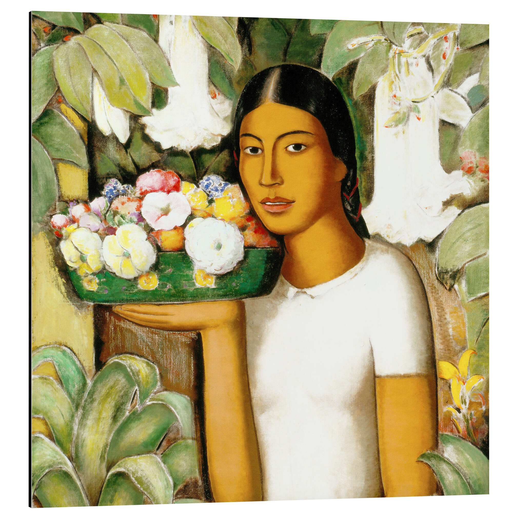 Magnettafel Mujer con flores