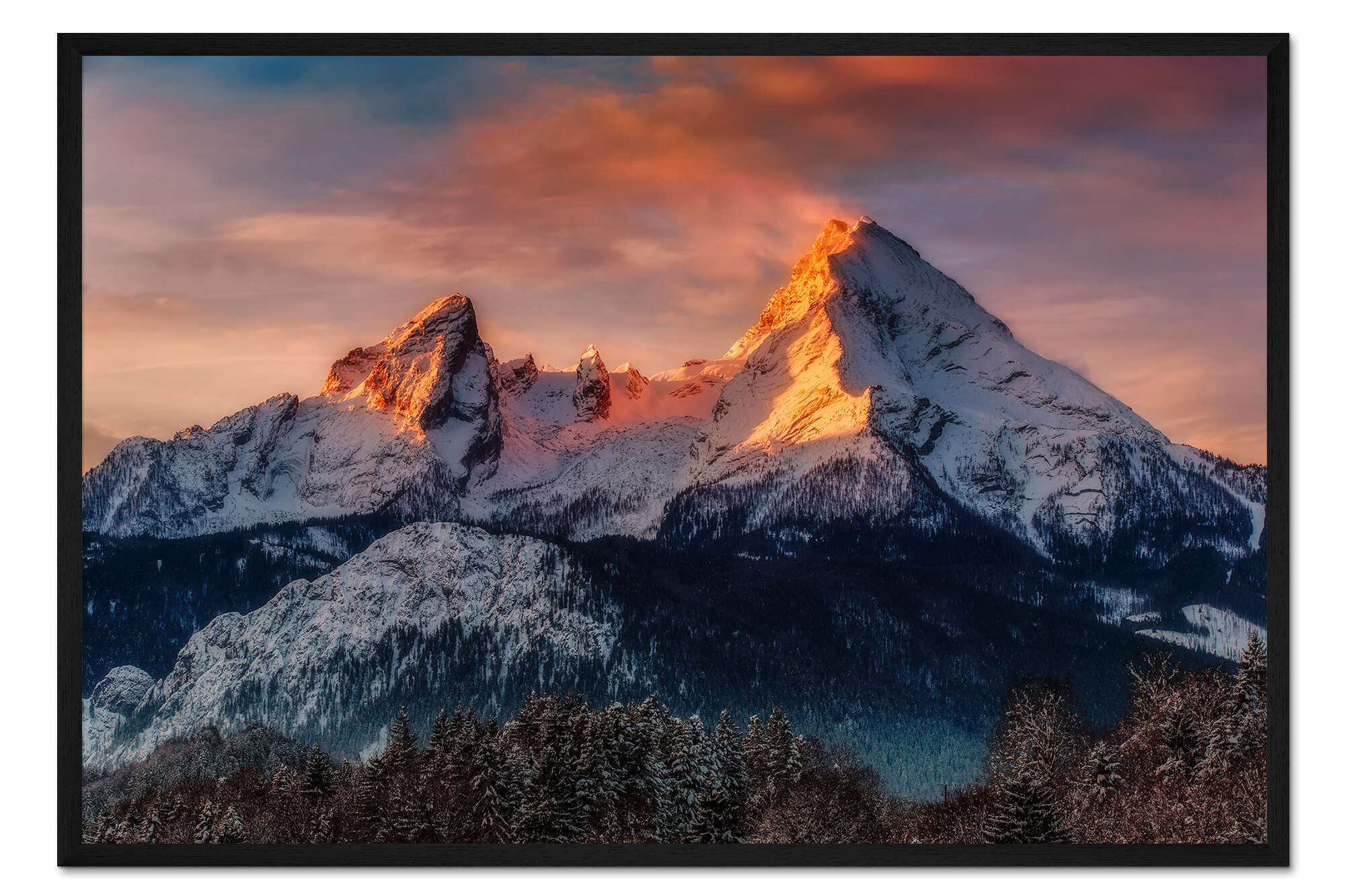 Posterlounge   Wandbilder   Querformat   Dieter Meyrl   Gerahmter Kunstdruck Alpenglühen am Watzmann