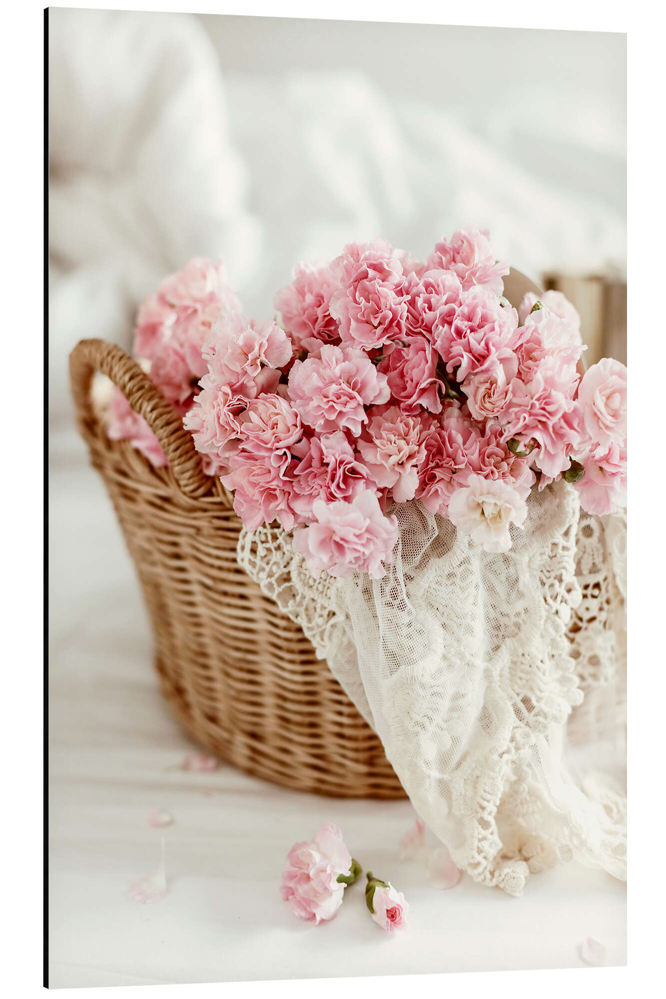 Posterlounge   Wandbilder   Fotografie   Magnettafel Rosafarbene Nelken im Weidenkorb