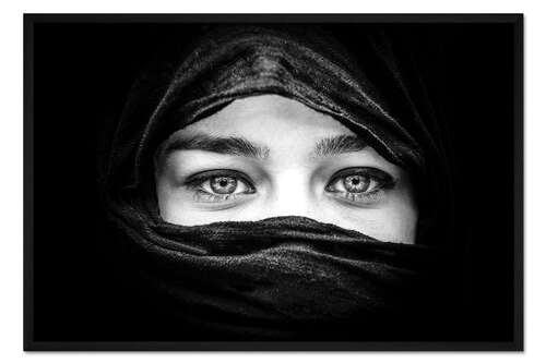 Posterlounge   Wandbilder   Schwarz   Gerahmter Kunstdruck Frau mit schwarzen Schal