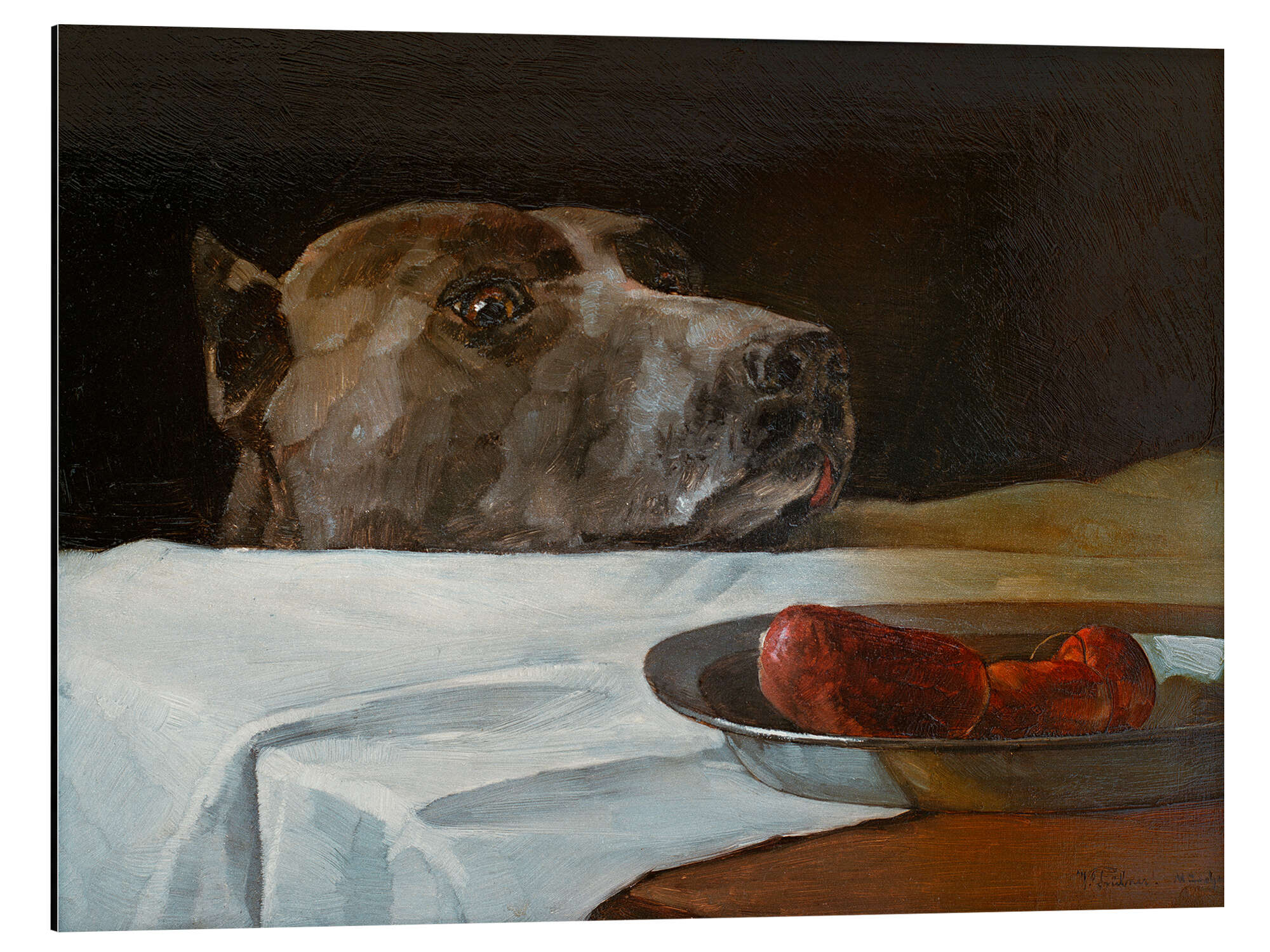 Posterlounge   Wandbilder   Braun   Wilhelm Trübner   Magnettafel Dogge mit Wurstschüssel