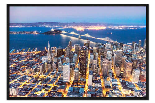 Posterlounge   Wandbilder   Fotografie   Matteo Colombo   Gerahmter Kunstdruck Luftaufnahme: San Francisco Innenstadt mit Bay-Brücke bei Nacht, Kalifornien, USA