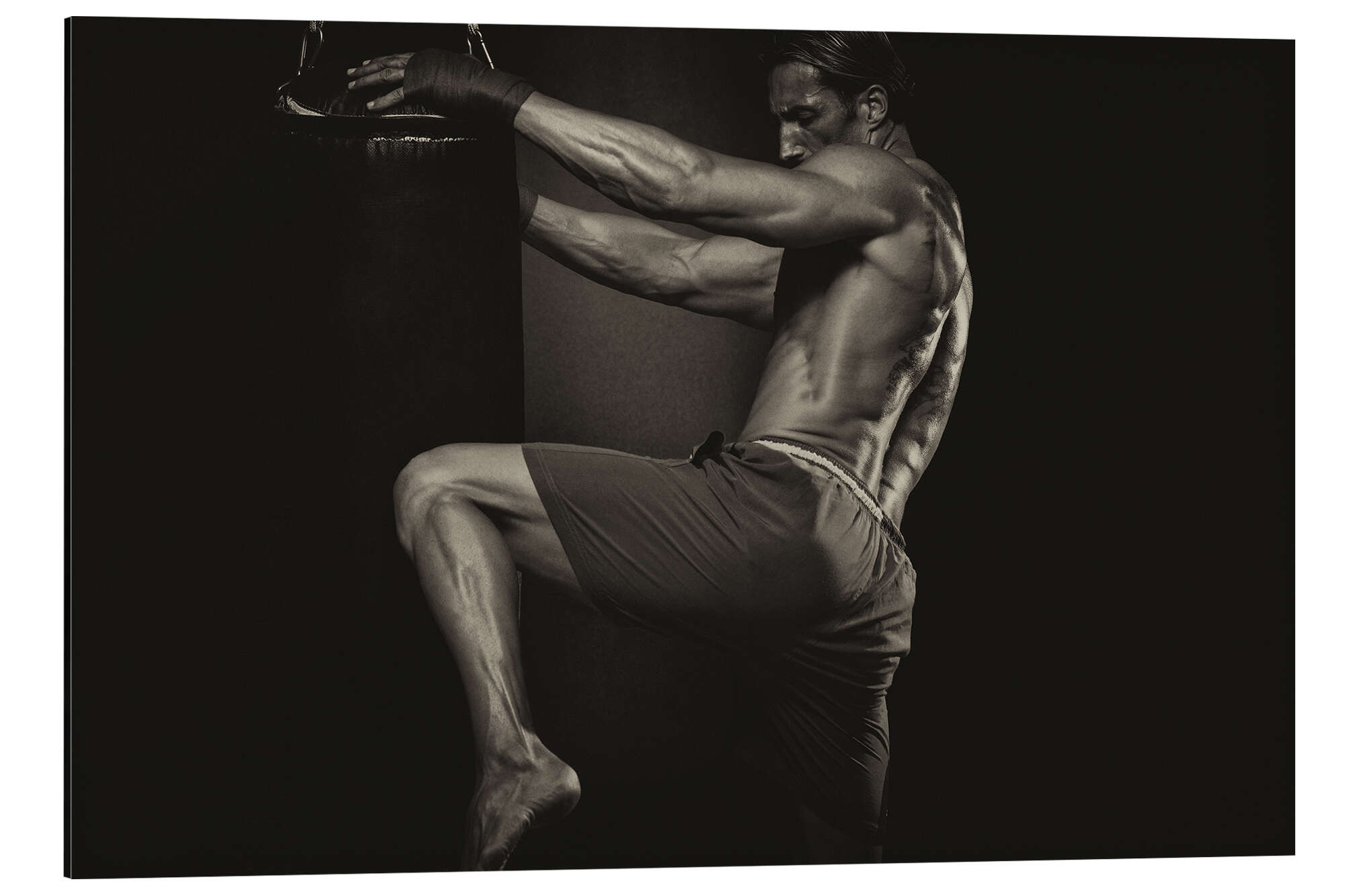 Posterlounge   Wandbilder   Fotografie   Magnettafel tätowierter Kickboxer mit Boxhandschuhen