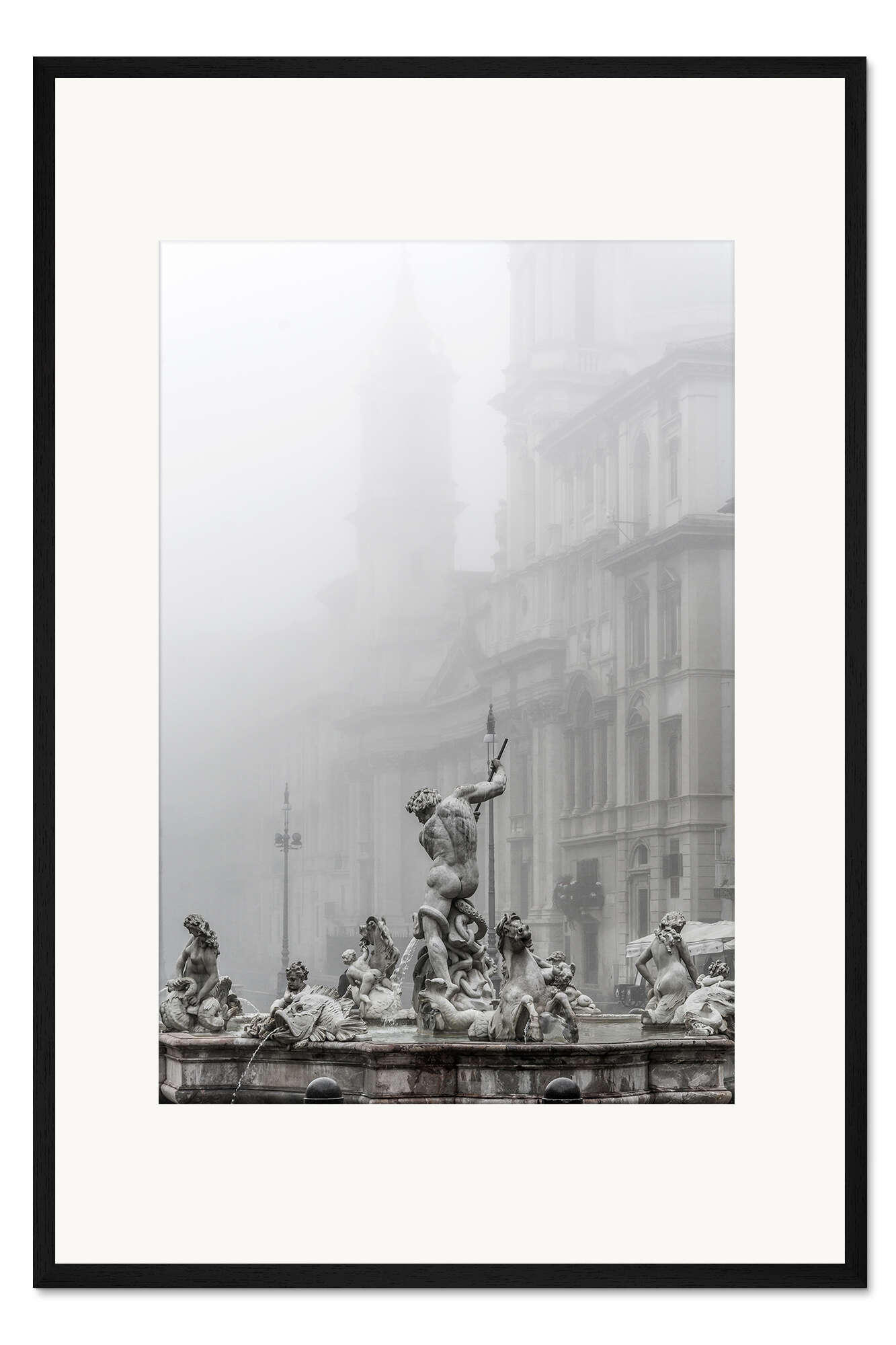 Posterlounge   Wandbilder   Schwarz-Weiß   Gerahmter Kunstdruck Fontana del Nettuno (Neptunbrunnen) in Rom, Italien