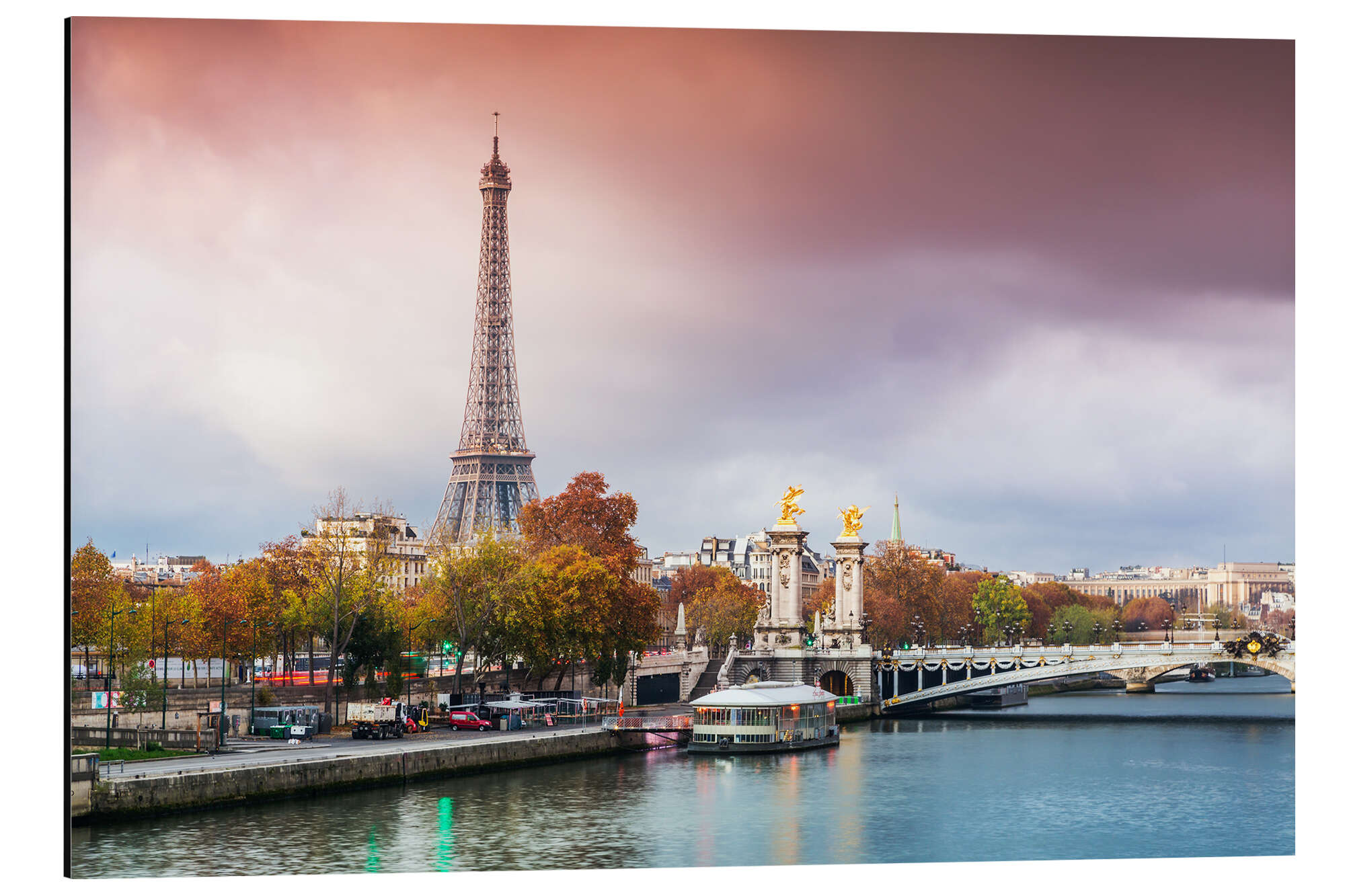 Posterlounge   Wandbilder   Fotografie   Matteo Colombo   Magnettafel Eiffelturm und die Seine bei Sonnenuntergang im Herbst, Paris