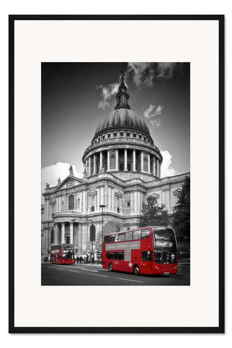 Posterlounge   Wandbilder   Rot   Melanie Viola   Gerahmter Kunstdruck LONDON St. Paul's Cathedral und Red Bus