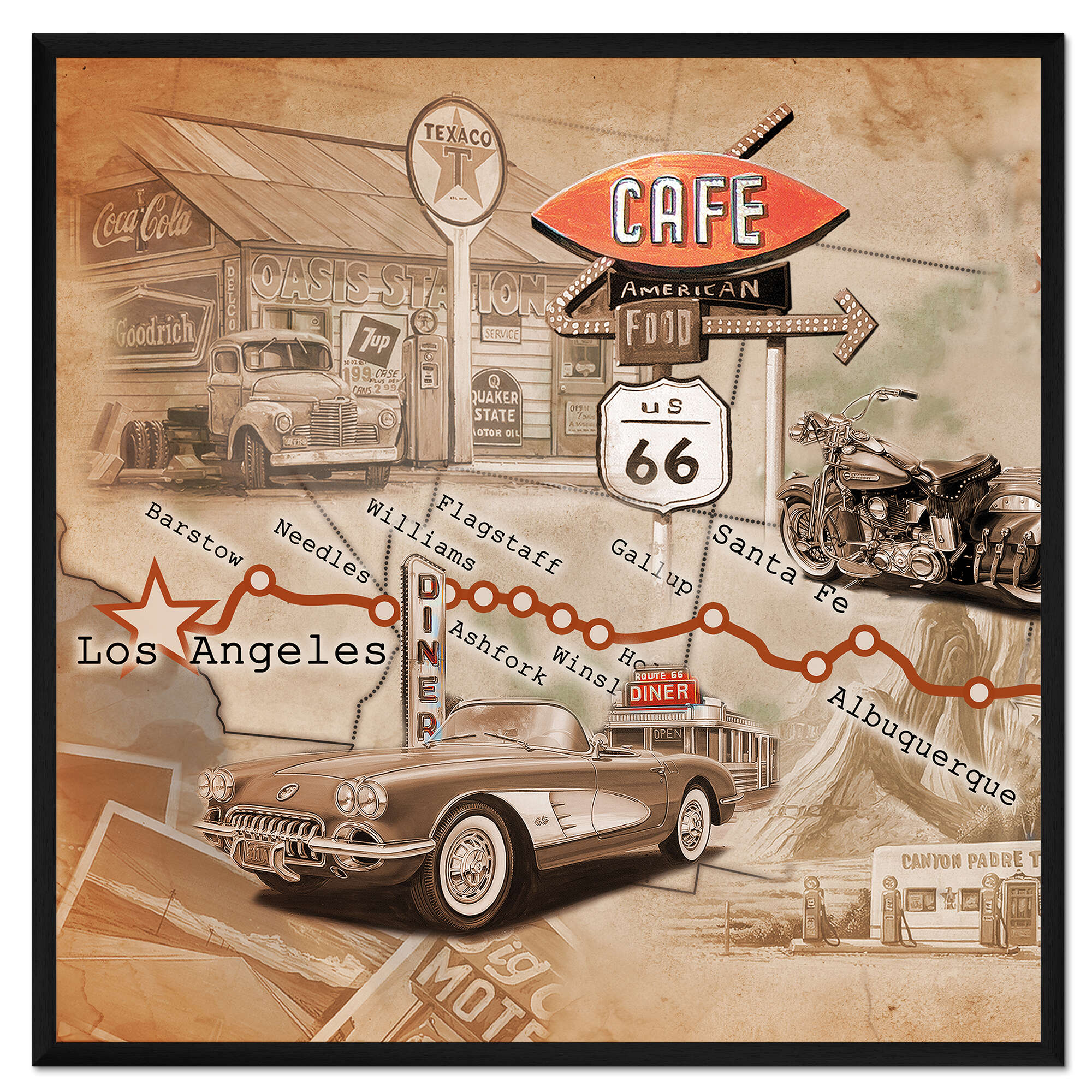 Posterlounge   Wandbilder   Quadrat   Georg Huber   Gerahmter Kunstdruck Los Angeles Road Trip