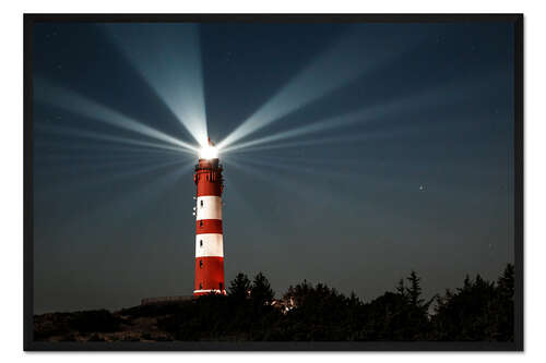 Posterlounge   Wandbilder   Querformat   Oliver Henze   Gerahmter Kunstdruck Leuchtturm Nacht auf Amrum