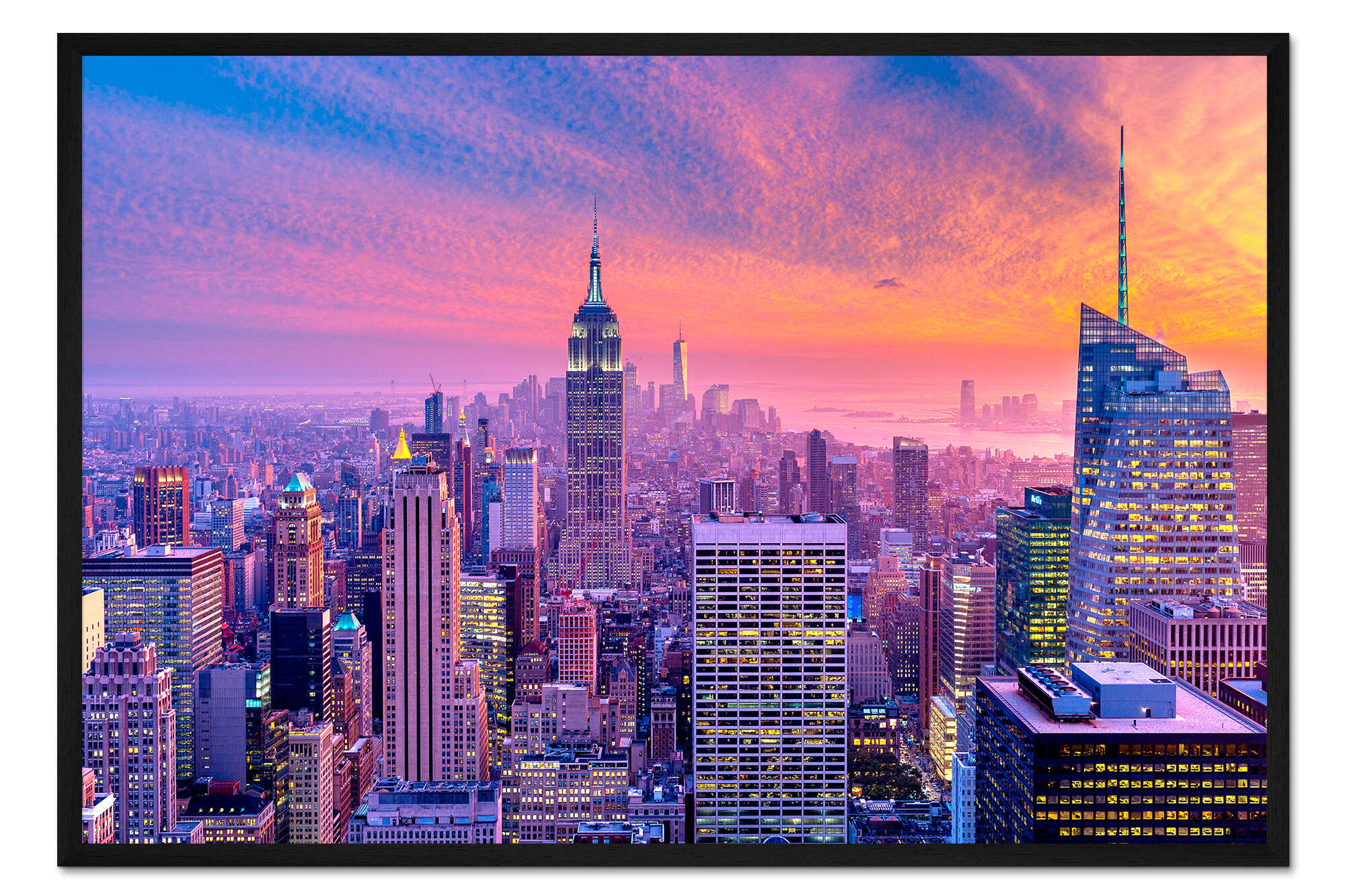 Posterlounge   Wandbilder   Lila   Sascha Kilmer   Gerahmter Kunstdruck Sonnenuntergang über New York