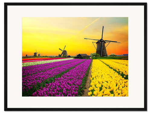 Posterlounge   Wandbilder   Fotografie   Gerahmter Kunstdruck Holländische Windmühlen und Tulpenfelder