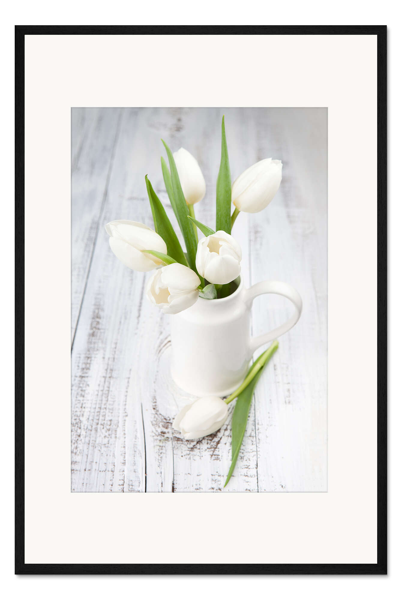 Posterlounge   Wandbilder   Fotografie   Gerahmter Kunstdruck Weiße Tulpen auf geweißtem Holz