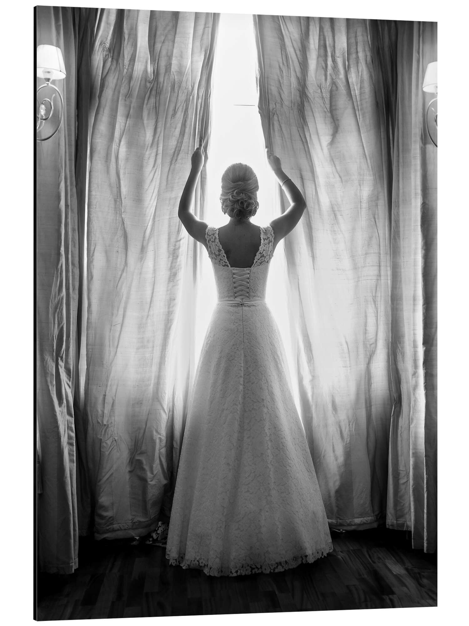 Magnettafel Elegante Braut an großem Fenster