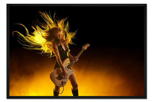 Posterlounge   Wandbilder   Orange   Gerahmter Kunstdruck Rockmusikerin mit E-Gitarre