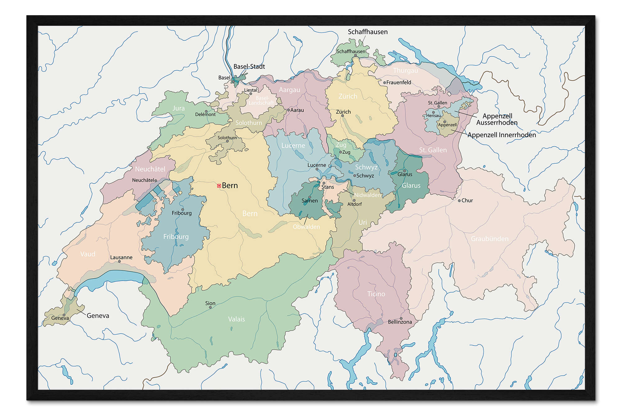 Posterlounge   Wandbilder   Illustration   Gerahmter Kunstdruck Schweiz - Landkarte