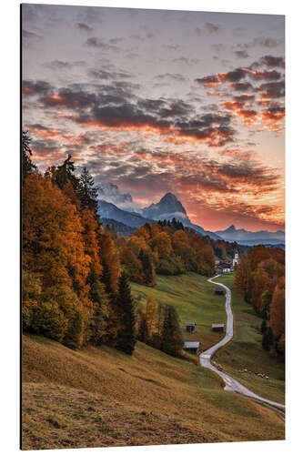Magnettafel Sonnenuntergang über der Zugspitze, Bayern