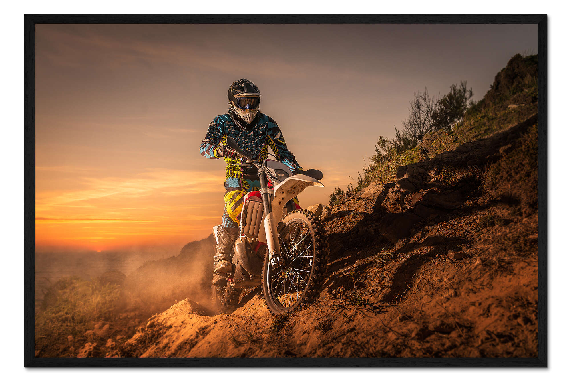 Posterlounge   Wandbilder   Sport   Motorsport   Gerahmter Kunstdruck Enduro-Fahrer am Berg