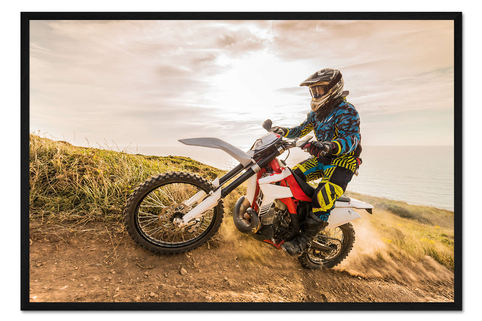 Posterlounge   Wandbilder   Sport   Motorsport   Gerahmter Kunstdruck Enduro-Fahrer an der Küste